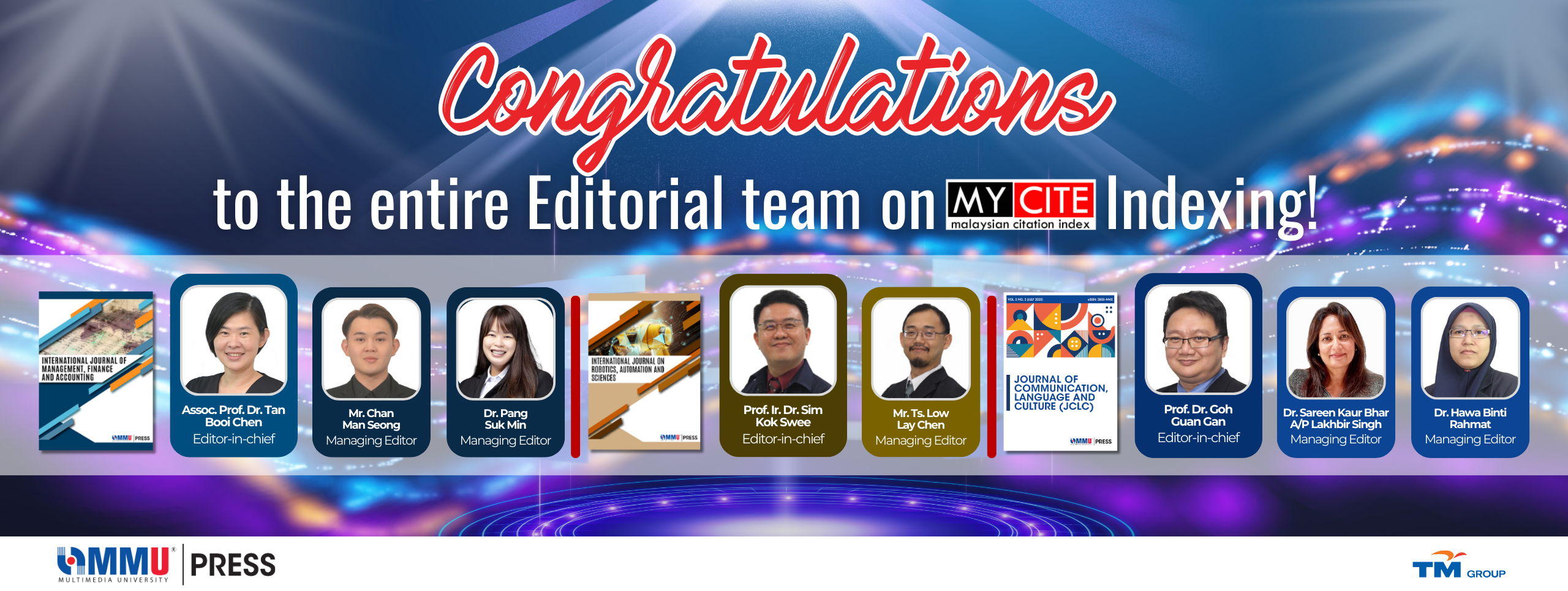 MMU Press is an arm for Multimedia University (MMU) to reach out to the world through quality empirical research. Its spirit is to connect MMU with the larger communities and institutions through innovative and inspiring writings. Hopefully, the shared values could have enticed the inquisitive, enthusiastic, and creative individuals. The philosophy behind the establishment of MMU Press in 2019 is to bring the best minds of various fields under one roof. We humbly welcome all contributors to publish with MMU Press to equip ourselves and the community at large with various new ideas and technologies.