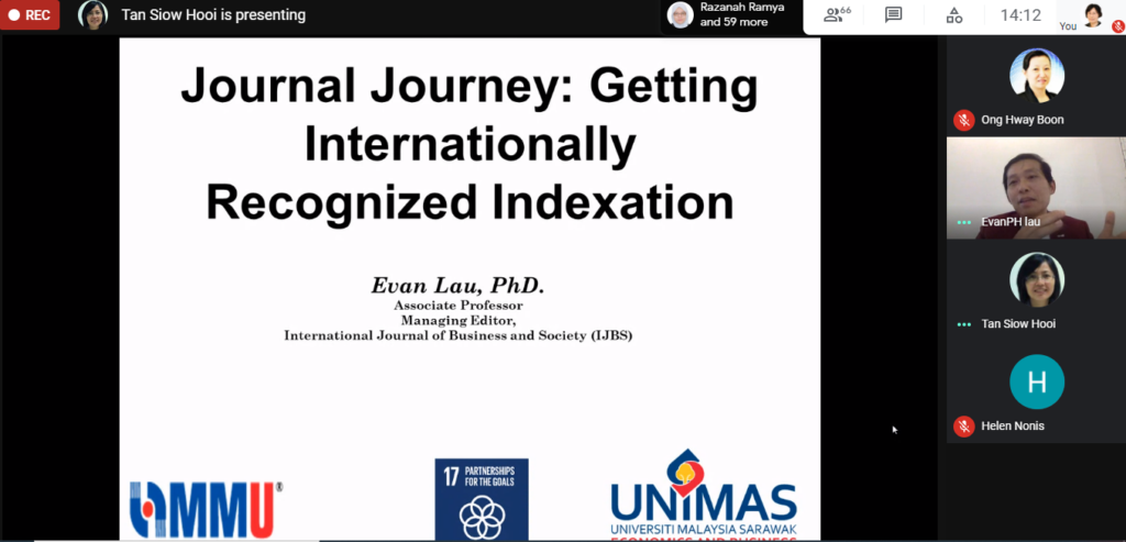 About 60 Malaysia Journals’ Editorial teams from various universities attended a sharing session organized by MMU Press, on November 18, 2020. The Managing Editor of International Journal of Business and Society (IJBS), Associate Professor Dr. Evan Lau, has opened up the Pandora box by highlighting the importance of getting indexation for a scholarly journal, providing salient points for the editors on how to perform Journal’s Health Check based on internationally recognized indexation – SCOPUS, ASI, and WoS. Dr. Evan also shared with all the participants the indexation journey of the IJBS in Scopus and WoS.